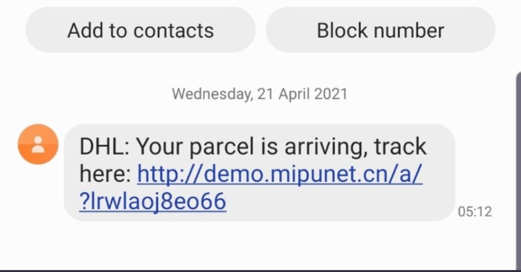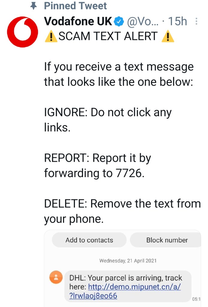 Vodafone have tweeted the text seems to be only coming through on Android devices and warned users not to be clicking any links, if you have got a text that looks as if it has come from DHL then you are asked to forward it on to 7726.