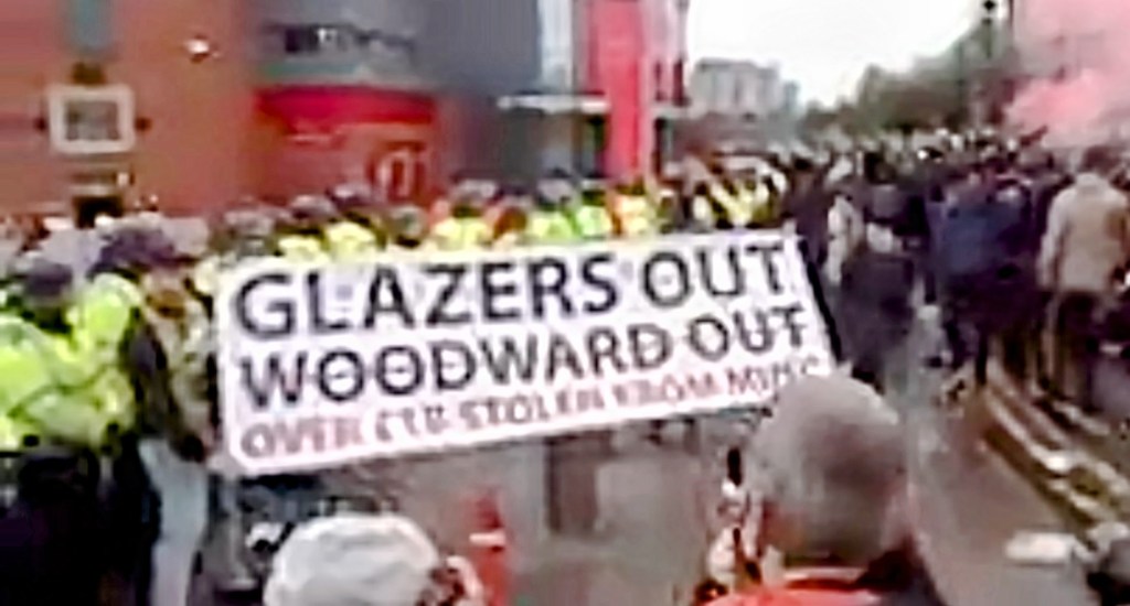 Police have arrested two people during peaceful ‘Glazers out’ protests outside Manchester United’s Old Trafford stadium.
