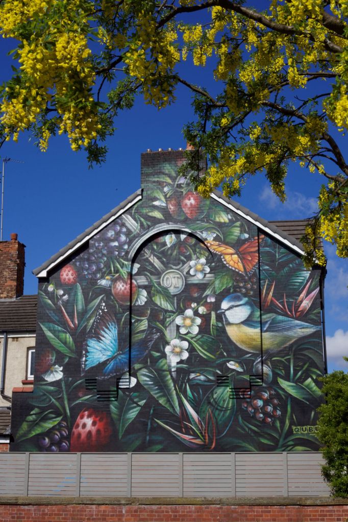 Botanical Garden on Henrietta Street is a mural by Northern Quarter favourite Qubek (Russ Meehan). It remembers the 19th century Manchester Botanic Gardens that once thrived on land that is now the White City retail park. The birds and butterflies represent the people of Old Trafford.