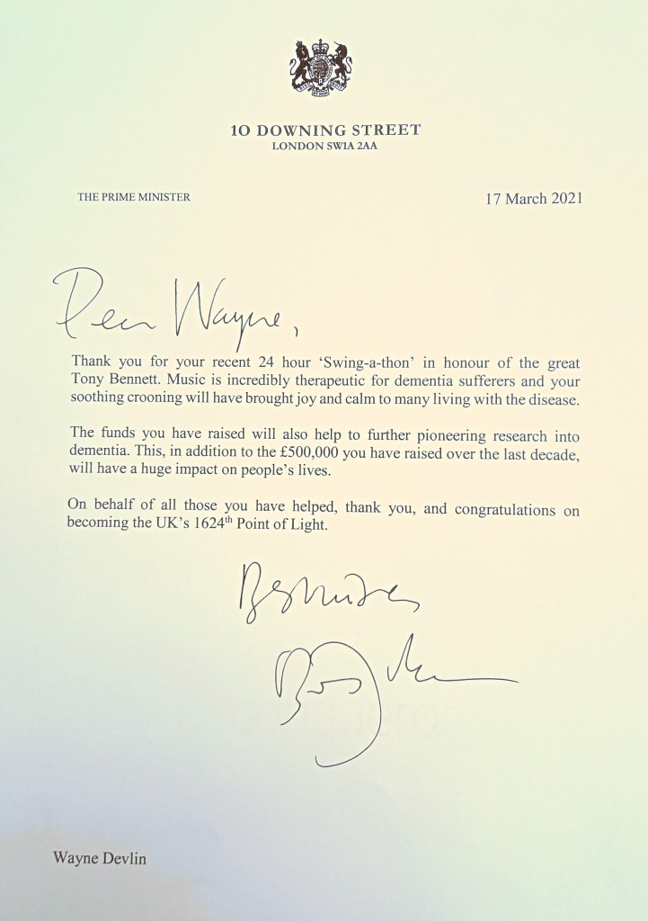 “As a Music for Dementia champion myself, I know the difference that music can make to those living with this dreadful disease, so it seems apt that Wayne used his voice to raise these much-needed funds for the Alzheimer’s Society.”