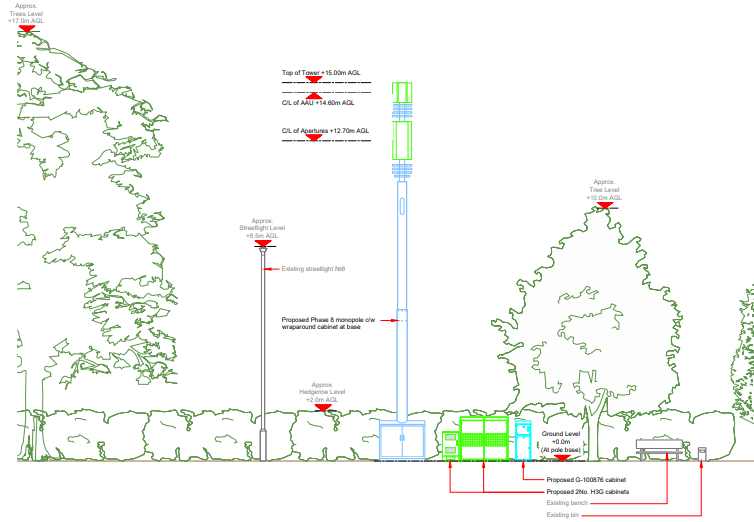 At the first attempt Three-UK failed to install a 20 metre 5G mast after hundreds of people with councillors objected to the plans which helped Trafford planning to refuse the application, the network did not give up on this bit of land and now have plans for a 15 metre 5G mast only yards away.
