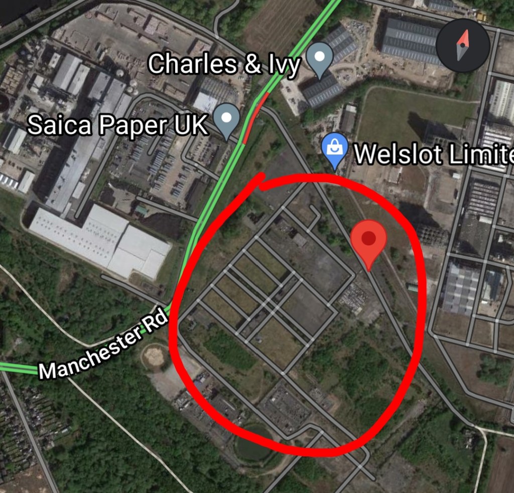 The development will see 5 mega sized storage/warehousing units and offices built on Voltage Park on Common Lane in Partington which is really close to the abandoned rail line on Manchester Road.