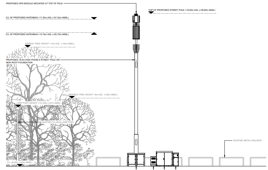 The 18 metre mast is located very close to a playground and school, from the application read it seems the school was not informed.