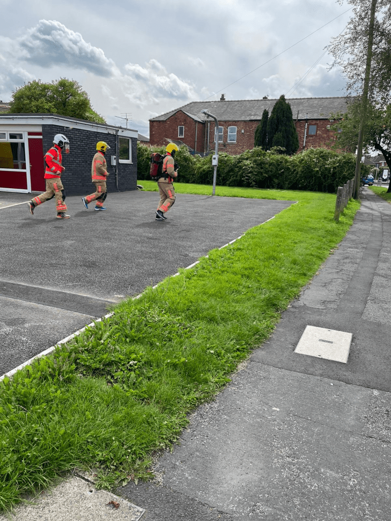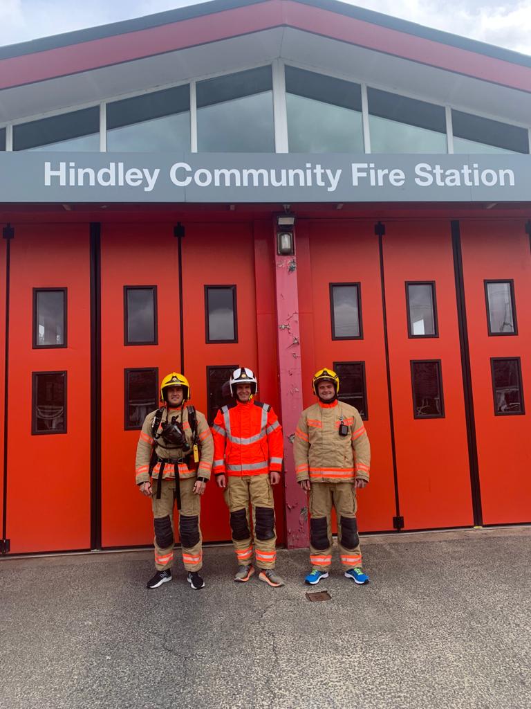 GMFRS’ Chief Fire Officer Dave Russel joined the pair for a training session on Thursday 12 August. The trio ran the 6.6 miles distance from Hindley to Atherton station and back, while wearing their fire gear.