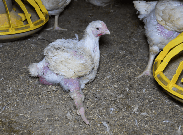 Broiler chickens have been genetically selected over decades to prioritise for fast growth, to produce as much meat in the shortest possible time. As a result, they can suffer from a wide range of health and welfare issues. Last year an investigation by The Humane League UK revealed that the muscle disease white striping, caused by fast growth, was present in over 8 in 10 standard packets of chicken on supermarket shelves.