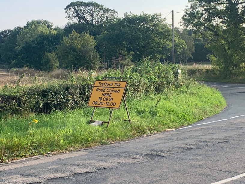 Chapel Lane all the way to Whitehouse Lane will be closed and on the back lanes towards Dunham and back again to Partington, roads will close at 8.30am and will reopen again at midday on 19/09/21