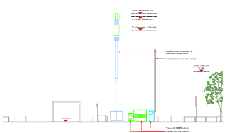 Now Three-UK are back again this time the mast will be shorter at 15m high, they are thinking this will help them to get the mast approved by the council,
