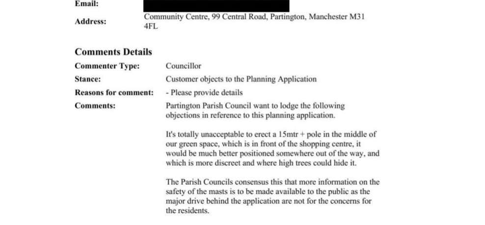 The reason why people are not aware about 5G is due in part is because of the political councillors and the Parish Council, this would mean all of Trafford not just Partington.