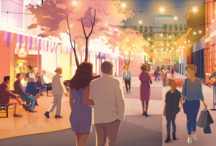 The redesign will bring the sparkle back into Stretford, a place where people can shop, eat and drink in nice modern surroundings.