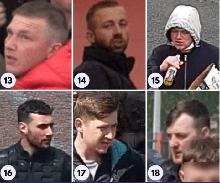 Detectives have today (17 November 2021) released images of 36 men they are looking to speak with in connection with violent disorder and protests before the Manchester United v Liverpool match scheduled at Old Trafford football ground on 2 May 2021.