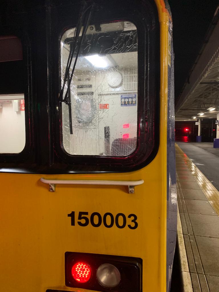 The incident happened as the train travelled towards Clifton on Friday 4th February at around 10pm, smashing the windscreen and causing shards of glass to hit the driver in the face.