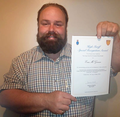 Ezra was awarded a Special Recognition Award by the High Sheriff of Greater Manchester during COVID-19 for his tireless work providing food and clothing for the homeless and food parcels and essentials for those in need during COVID-19 lockdowns. Even HRH The Duke of Kent acknowledged the great work Ezra is doing by awarding him with a Royal commendation.