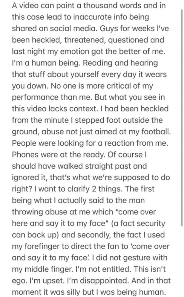 Fans replied to this statement and not many people backed him, he is a professional footballer, a well known public figure and will get people trolling him, its understandable in a moral context that he got upset, however this only causes more problems and he be best not to be responding.