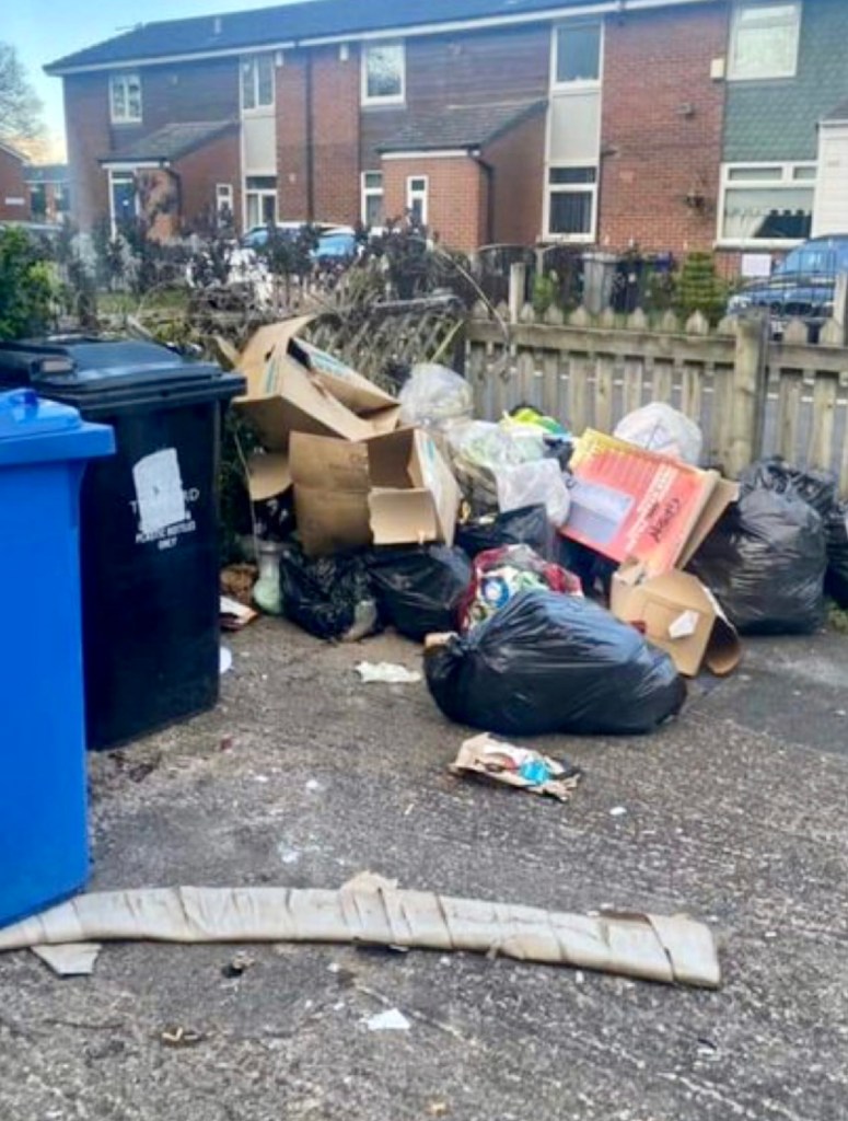 Residents at a block of flats on the Sale West Estate are unhappy at the amount of rubbish that has piled up at the front of the property.