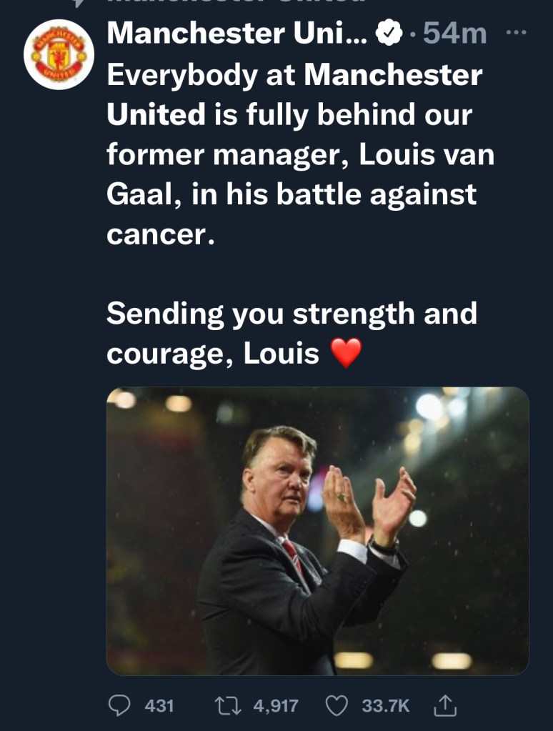 The ex Manchester United manager Louis Vaan Gaal has admitted he is suffering from prostate cancer on a Dutch programme yesterday.
