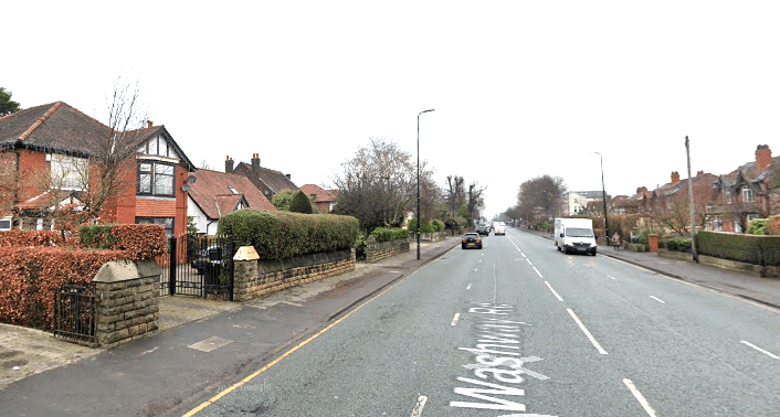 A male motorcyclist looks to be in a bad way tonight after coming off his bike on Washway Road in Sale, at around 4pm today 14 April.