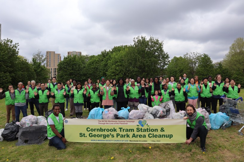 Extending that to the neighbourhood, on a larger scale the volunteers from the World Mission Society Chruch of God in Manchester and London teamed up. And on Sunday the 1st of May 2022, they started off the month with a united clean-up campaign to keep Old Trafford and Manchester clean and neat.