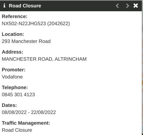 Further down at the junction of Park Road and Manchester Road Vodafone are doing work which looks to be a mast installation as no mast is present in that area, the GM Roadworks website says the road will be closed for two weeks!