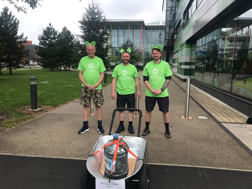 The epic feat took him two days and saw Chris pushing the wheelbarrow 36 miles, spurred on by friends Phil Poulson and Karl Pendleton. Unfortunately a wheel broke just three miles short of the finish-line, but a replacement was found and Chris completed the grueling challenge on Friday evening. The adventure was worth it all to raise money for Royal Manchester Children’s Hospital Charity and Alder Hey Children’s Hospital Charity.