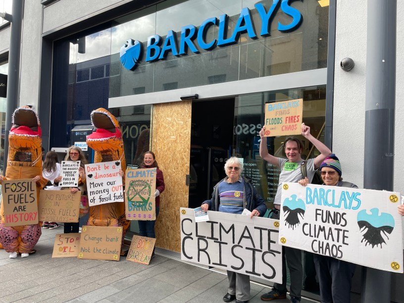 The activist group said the protest was a response to Barclays’ position as the biggest funder of fossil fuels in Europe. Sarah Donaldson, a local scientist, said: “Since the Paris Agreement in 2015, Barclays has invested around $167 billion in fossil fuels. While scientists are warning of catastrophe and the potential collapse of civilisation, Barclays is making huge profits by investing in coal, oil, gas, fracking, Arctic drilling and deforestation of the Amazon.”
