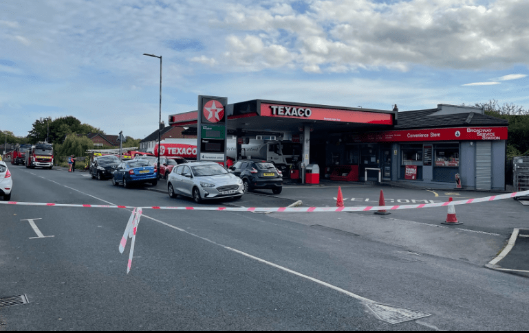 A fuel spillage was the cause of a road closure at the Texaco garage on Broadway in Urmston this afternoon.