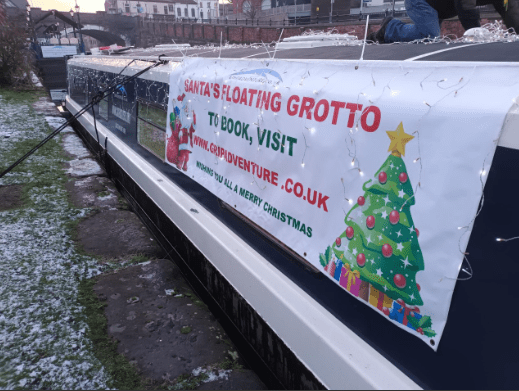 Santa’s floating grotto makes a return for 2022 in Sale,Trafford for one weekend only!
