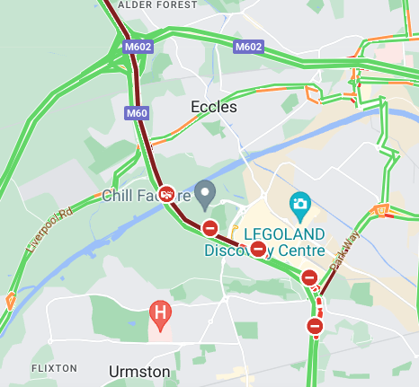 The traffic is backed up from Trafford Centre all the way past Eccles at the time of publishing, motorists are currently being diverted in the area.