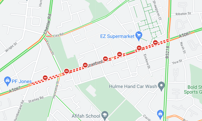 Members of the public are asked to avoid the area, with road closures in place on Stretford Road and East Union Street.