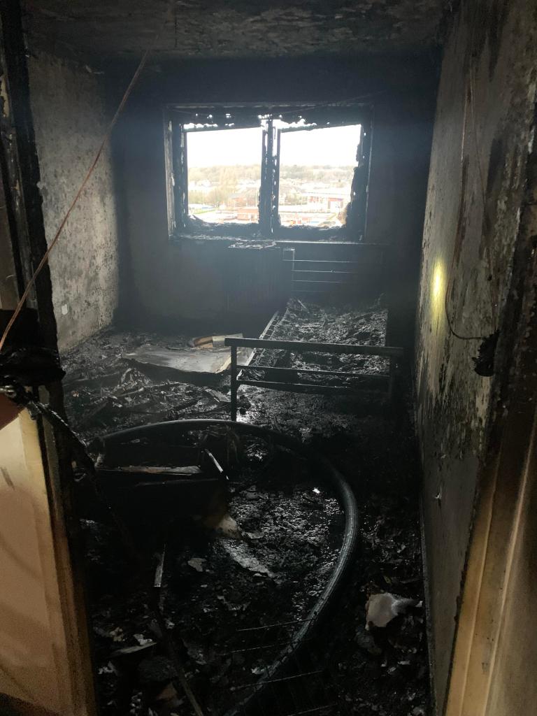 Pictures of a flat significantly damaged by fire in a high-rise building in Salford show the potential dangers of faulty electric bike and scooter battery packs, as Greater Manchester Fire and Rescue Service (GMFRS) urges people to act responsibly.