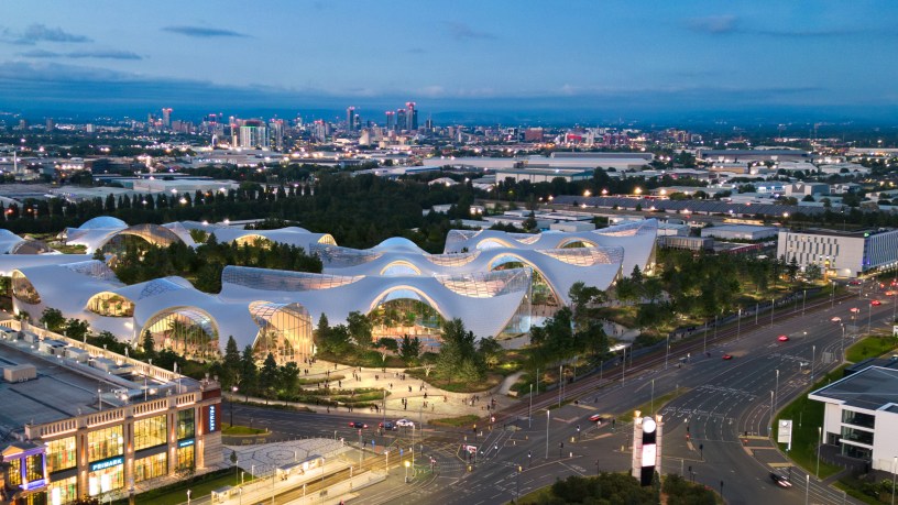 The concept for the project has moved from being principally a single building (with zones) and undulating roof line, to a more pavilion-style concept – with separate, connected structures which are immersed and enveloped in a natural landscape. New on-site parking arrangements are also concealed in nature, the roof providing an outdoor customer terrace with views through to the canal.