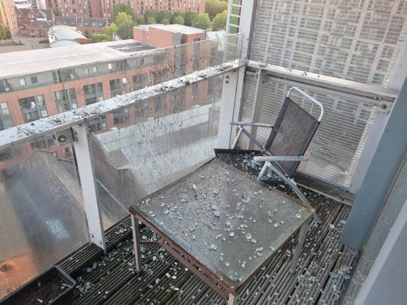The fire caused the safety glass on the balcony to shatter and fall onto balconies below, while burning debris fell onto a balcony further down causing a second fire. Thankfully firefighters were able to prevent the fires spreading further and there were no injuries, but there was considerable damage to balconies.
