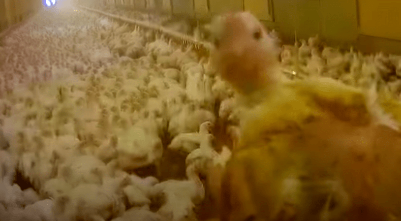 Meanwhile an investigation from Open Cages shows a farm mistreating chickens, young chickens run over, operatives have to break legs and worse, chickens seen in a video all crammed into one area and they are having to walk in urine.