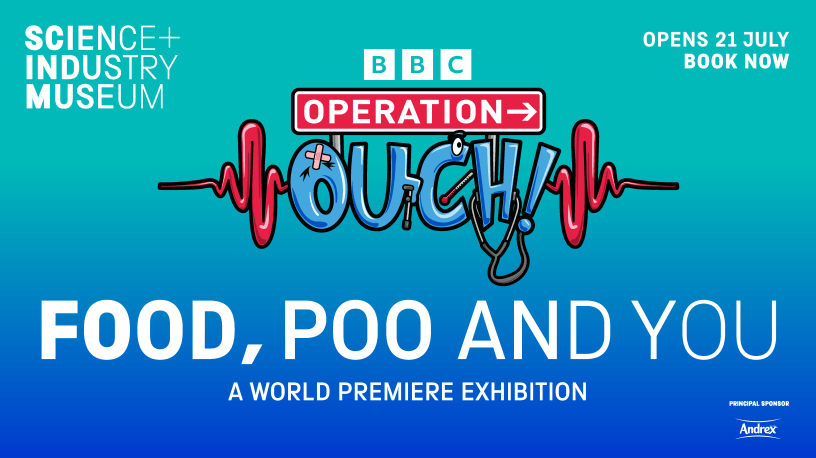 Operation Ouch! Food, Poo and You will open at the Science and Industry Museum on Friday 21 July. This outrageous adventure will send visitors on a rib-tickling, taboo-busting voyage through the digestive system, lifting the lid on the fascinating science inside our bodies along the way.