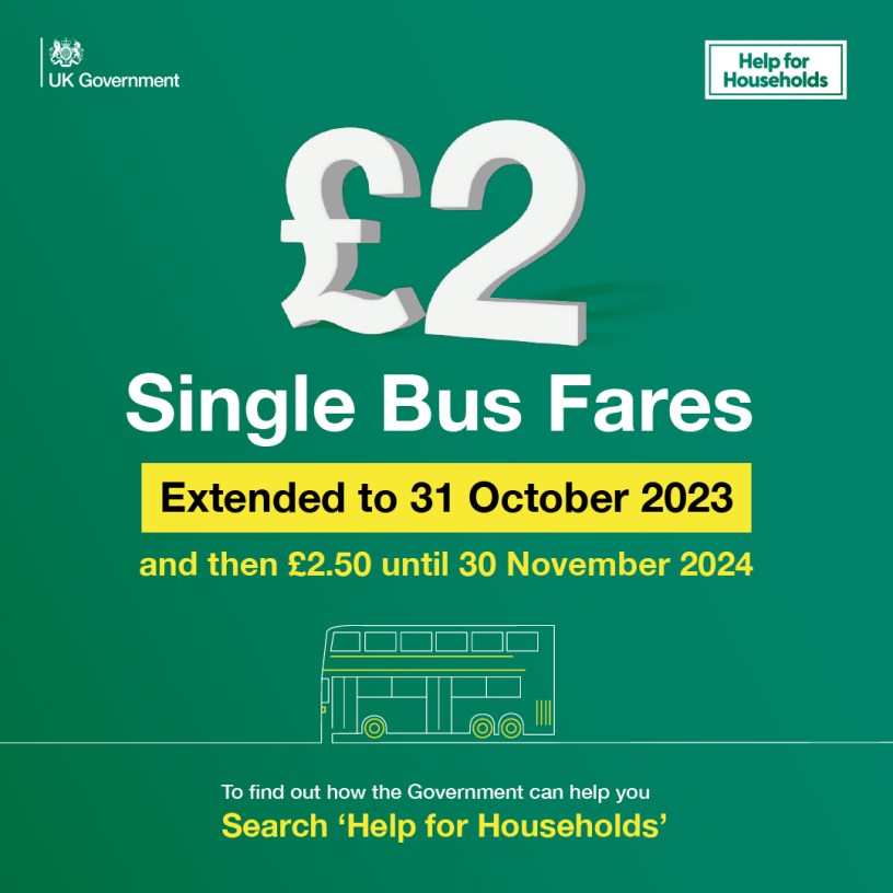 The £2 bus fare cap, previously due to come to an end on 30 June, will now continue until 31 October, helping passengers save a third off the average ticket price.