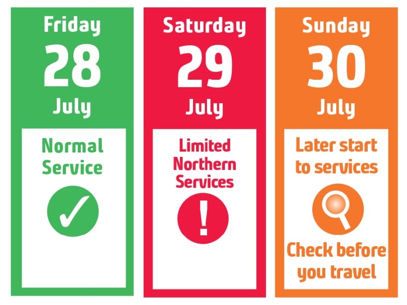 Due to the impact strikes have on fleet displacement, early morning services on Sunday (30 July) are also expected to be disrupted.