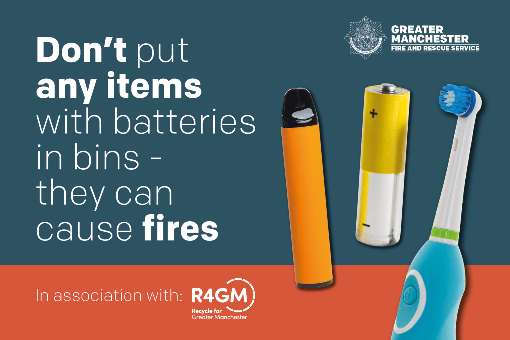 Greater Manchester Fire and Rescue Service (GMFRS) is working with Recycle for Greater Manchester (R4GM) to raise awareness about the fire risks associated with disposing of batteries in household bins.