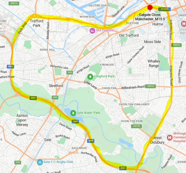 Roads included within this Section 60 perimeter are Mancunian way, Princess Road, Bridgewater way, Park way, Chester Road, M60, Princess Road.