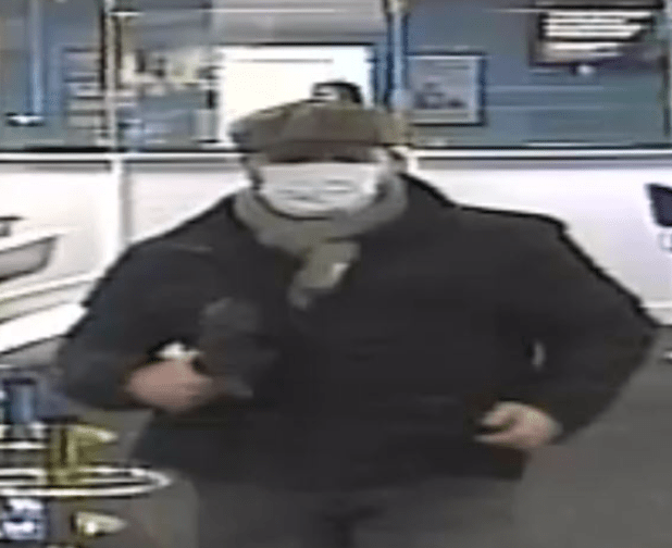 He approached the cashier’s booth, before pointing something at a member of staff and demanding money. He then made off with a sum of money.