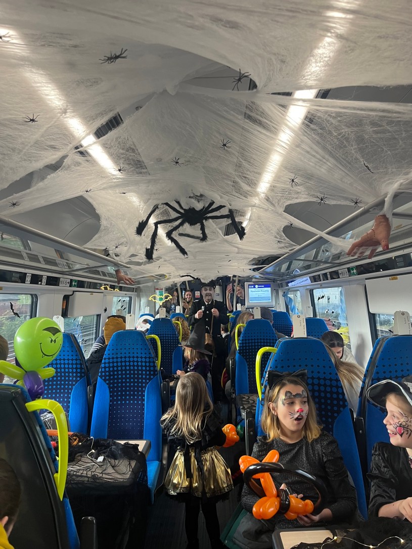 Families traveling from Crewe to Manchester Piccadilly had a frightfully good time on-board the train operator’s spooky service as they were entertained by magicians, a balloon modeler and scary storytellers.