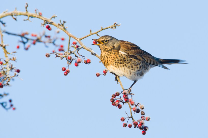 “Haws are eaten by migrating birds such as redwings, fieldfares and thrushes as well as small mammals.