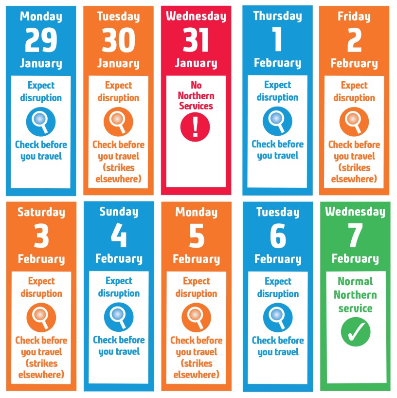 Northern has advised its customers across the North of England that services will be brought to a halt on Wednesday 31 January as the latest ASLEF strike takes place.