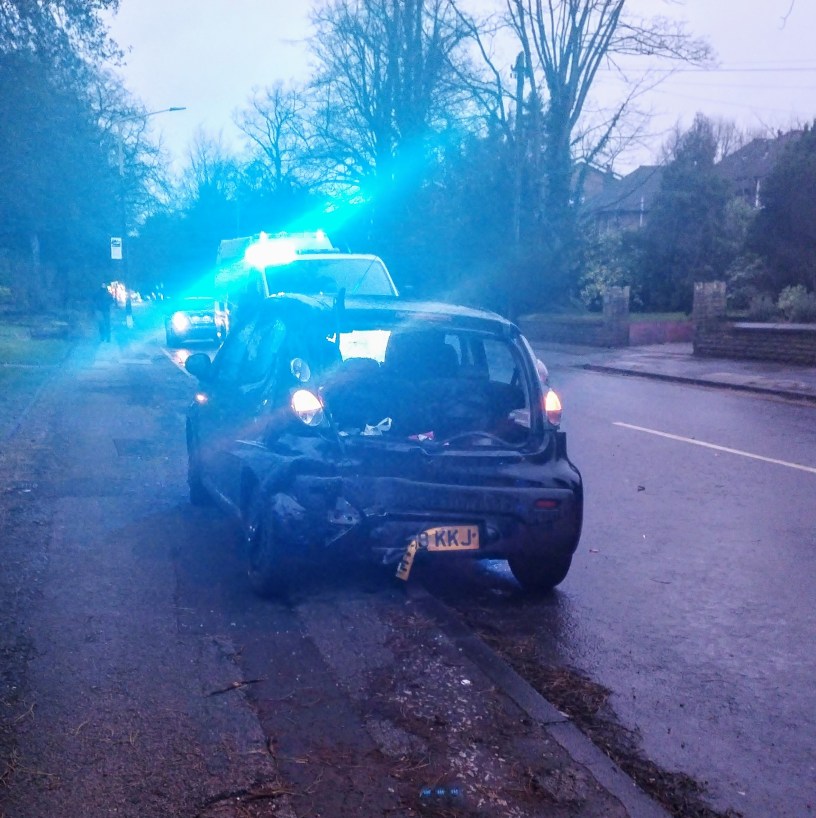A two car collision on Brooklands Road in Sale has caused chaos on the roads around Sale this evening as police close off the road.