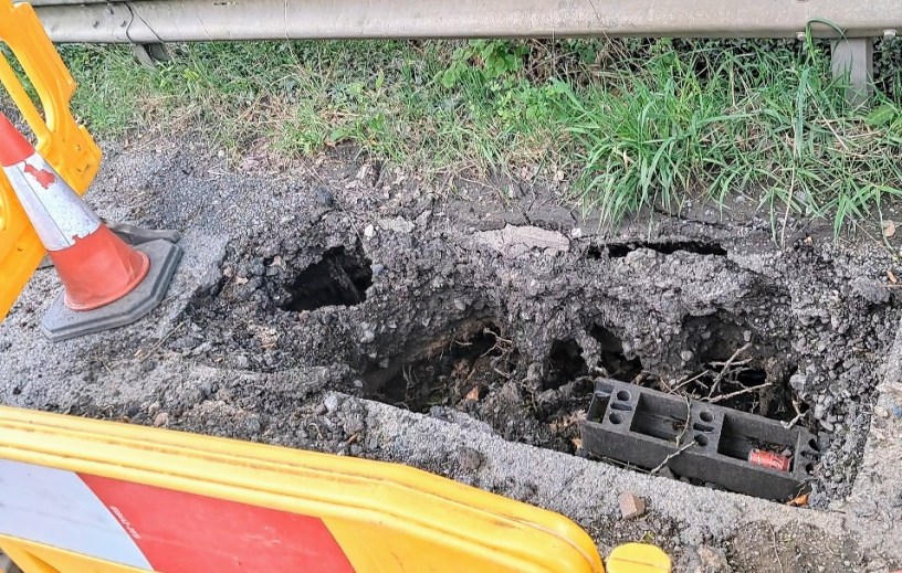 A small sinkhole that appeared on 2 March 2024 on Covershaw Lane near Partington has still not been fixed and now getting much worse.