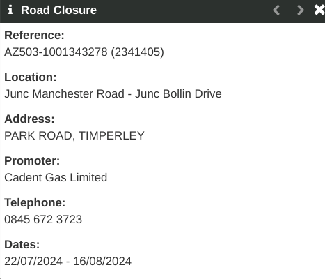 For diversion information you could try going down Canal Road on to Deansgate Lane then on to Brook Lane and then on to Navigation Road which would also get you to many other places than just Altrincham and you could also travel north bound towards Sale and Stretford.
