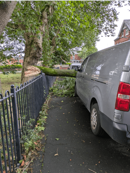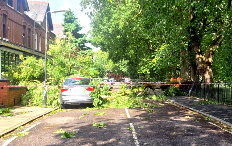 Images show a tree had fallen on Park Avenue in Old Trafford.