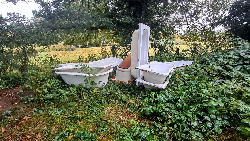 This is the first bath tub fly-tip we have ever come across and it smelt bad in the area they were dumped, it is currently unknown who dumped them however it is likely to be a trades person who took advantage of the road being closed and wanted to save money on going to the tip.