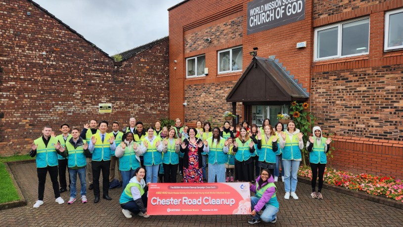 The volunteer group ASEZ WAO, from the World Mission Society Church of God, Manchester branch, gathered for a cleanup campaign in efforts to ‘Tidy Trafford Together.’