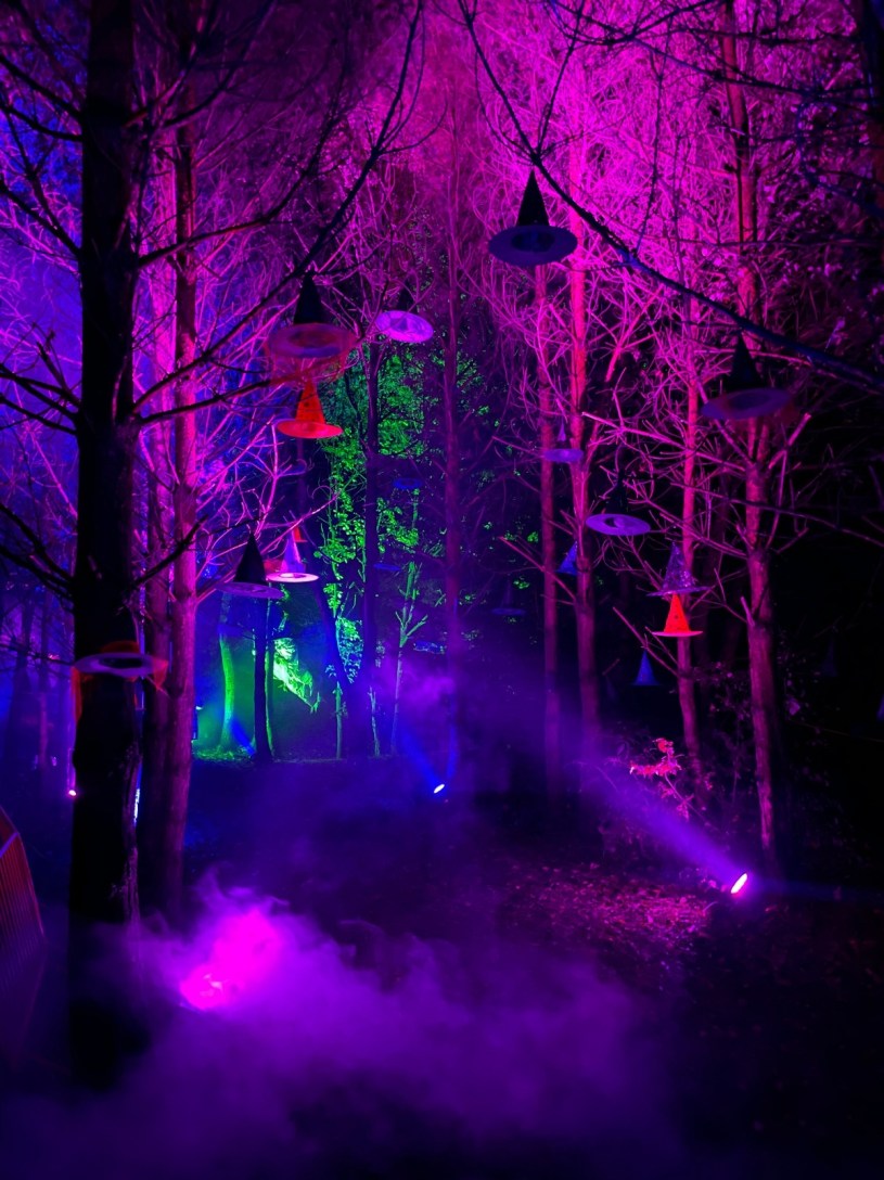 As dusk falls, embark on a magical quest through the mystical forest where you will wander through Skeletons’ Hollow, dance with friendly ghosts and journey through the woodland spider’s tunnel to the magical witches’ lair.