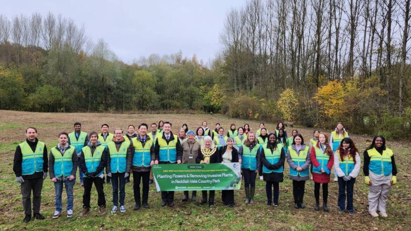 The volunteer group ASEZ WAO, from the World Mission Society Church of God, Manchester, and Birmingham branches, gathered in efforts to restore the Butterfly Field at Reddish Vale Country Park by clearing vegetation after the field’s annual cut.