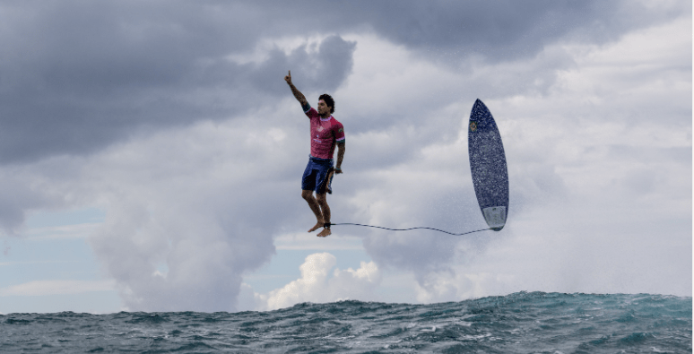 The image was taken by Tahiti-based French Photographer Jerome Brouillet on the third day of the Surfing event at the 2024 Olympic Games in Teahupo’o, French Polynesia.